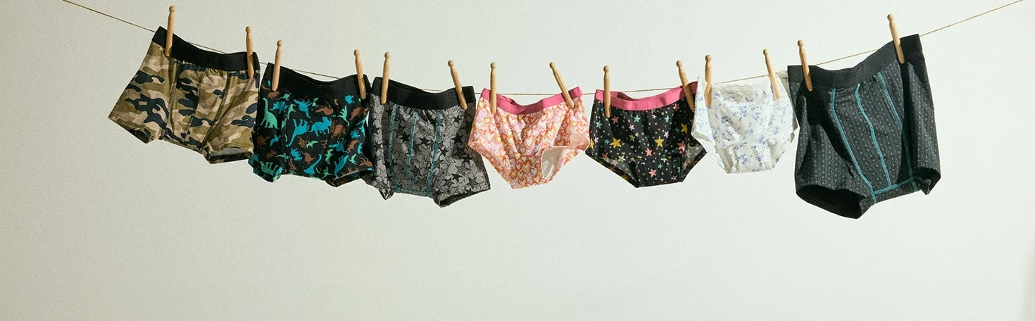 Our boy's range comes in a variety of bright patterns; dinosaurs to airplanes, in fun shades like blue and green. They can absorb up to 125ml of urine and don’t make it noticeable if some urine accidentally leaks.